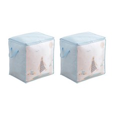 해피 동물 캐릭터 스퀘어 손잡이 이불 수납 가방, B블루, 2개