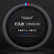 자동차핸들커버 Chevrolet new Kovo Zwolando Malibu xl explorer Cruze Chuangku 핸들 커버 가죽 사계절 얇은핸들커버, 원형 – 천공(3색 라벨 포함) 빨간색 및 파란색
